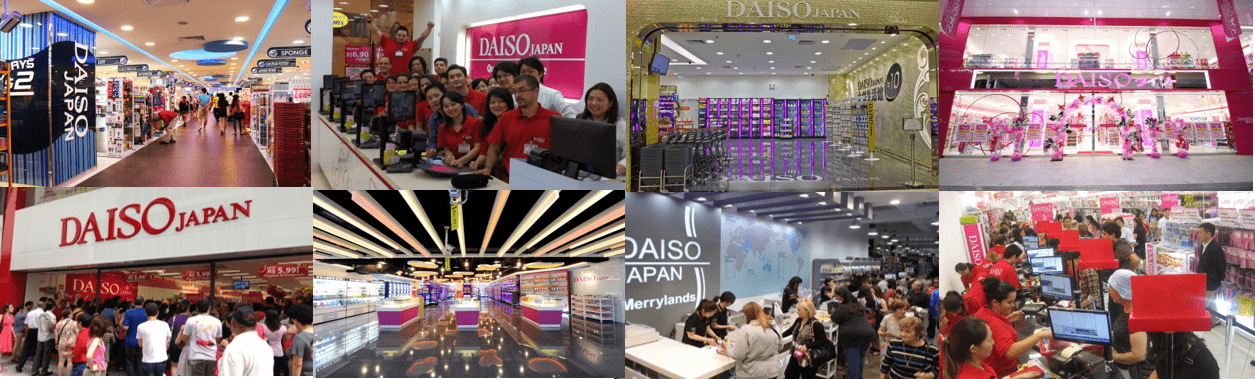 • ในประเทศญี่ปุ่นร้าน DAISO มีกว่า 3,620 สาขา ในแต่ละสาขามีระบบคอมพิวเตอร์ที่ทันสมัยครบถ้วน สะดวกในการสั่งซื้อจากแต่ละสาขา เพื่อนำข้อมูลมาผลิตสินค้า และส่งออกขาย นอกจากนี้ภายในประเทศญี่ปุ่นยังมีการขยายสาขาใหม่อยู่ทุกเดือนๆ ละ ประมาณ 20 สาขา